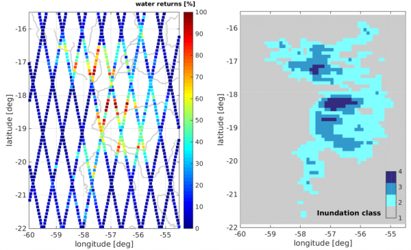 The difficulty of processing inland altimetry data stems from the fact that the water signal is superimposed by radar returns from all surfaces (e.g. vegetation, artificial structures…) within the altimeter footprint. In consequence, inland waveforms have complex shapes and varying qualities. A way to eliminate unusable waveforms, i.e. reflections from land or bad-quality data, is waveform classification on the basis of statistical parameters such as skewness, kurtosis, peakiness, maximum power, and signal-to-noise ratio.
